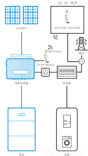 Pour aborder le mauvaise pénétration et performances du réseau instables de traditional WiFi in micro-energy storage scenarios, WiFi HaLow La technologie de communication (sub-1 GHz) est adoptée. Par rapport au WiFi traditionnel, il offre une capacité de pénétration plus forte et une distance de transmission plus longue. Par rapport à la communication LoRa, il offre une vitesse de transmission plus élevée et une meilleure stabilité. L'instrument prend en charge nativement cette technologie, ne nécessitant qu'un point d'accès supplémentaire côté onduleur pour permettre la communication sans fil. Il prend également en charge la configuration réseau rapide un-à-un et un-à-plusieurs, ce qui le rend adapté aux systèmes de micro-stockage multi-onduleurs et de balcon domestiques.