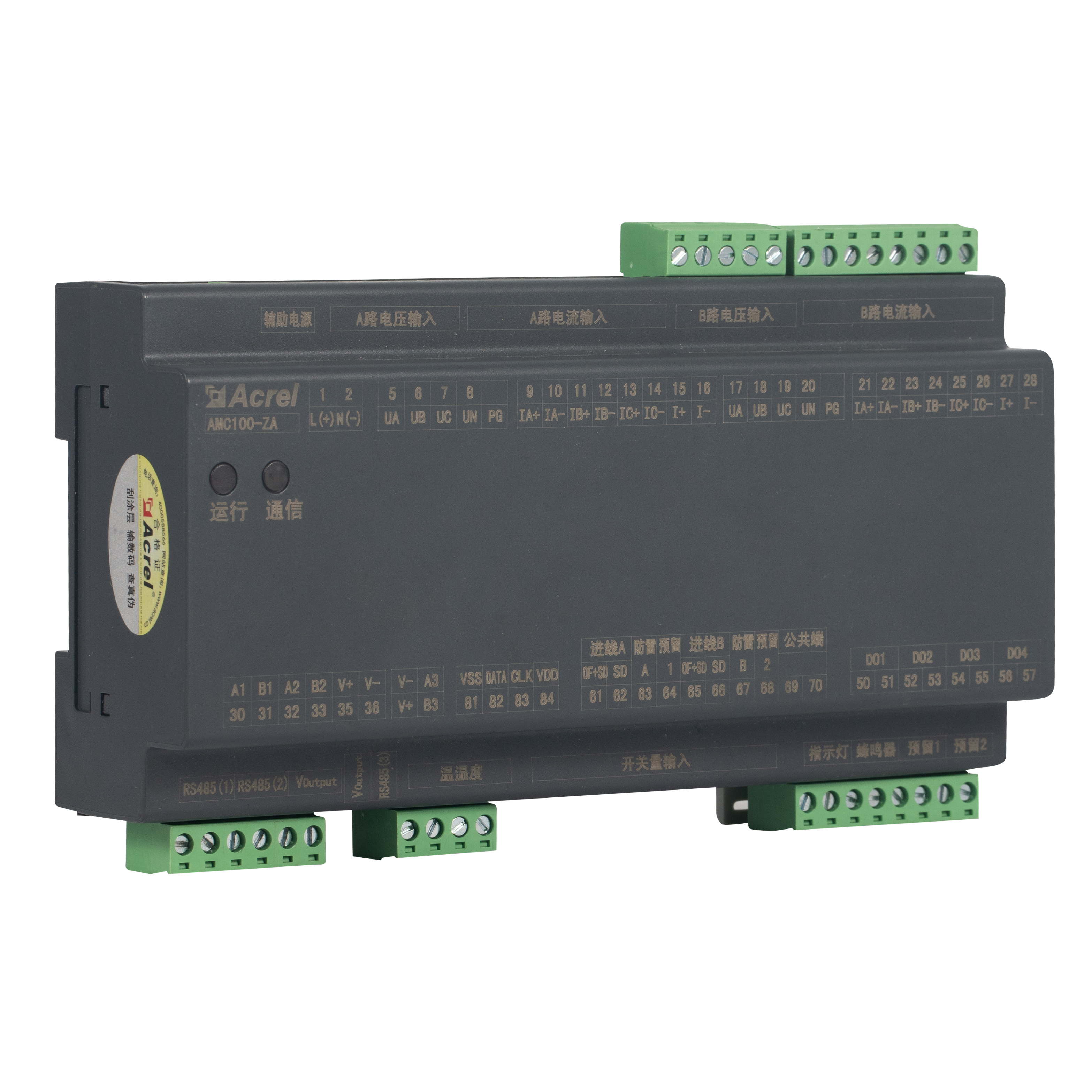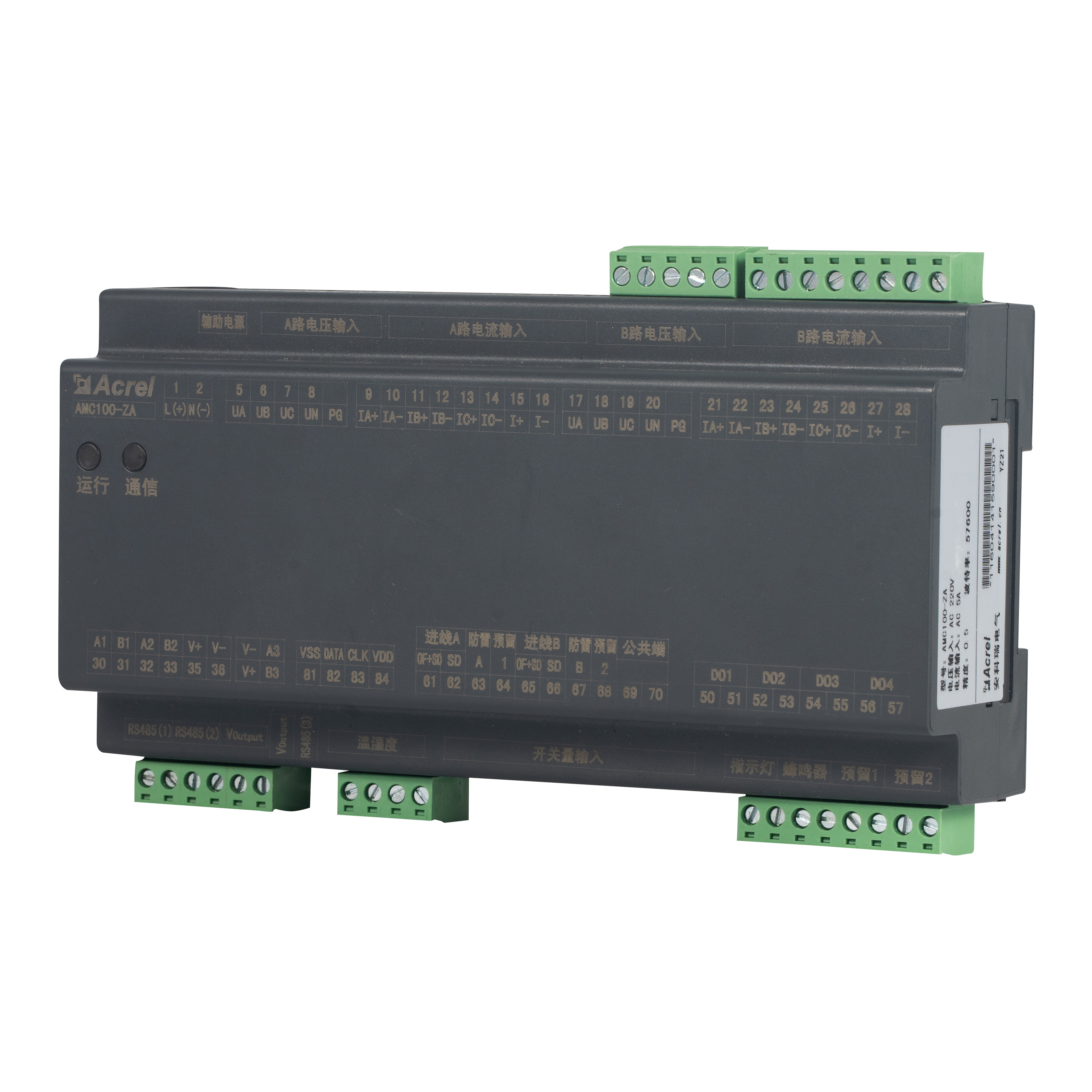 L'AMC100-ZA est l'unité de surveillance de précision de la distribution d'énergie CA sur rail DIN d'Acrel, conçue pour les racks de serveurs de centres de données. Il suit simultanément tous les paramètres électriques des doubles alimentations triphasées A B, 192 circuits sortants, 8 points d'état DI / 4 DO, 2 canaux de fuite, 1 capteur de température-humidité et 63 harmoniques. Trois ports RS485 Modbus-RTU permettent une intégration transparente BMS/DCIM. Un boîtier compact de 180 mm, une précision de ±0,5 %, des seuils d'alarme par canal et un avertissement sonore et lumineux instantané réduisent le gaspillage d'énergie et les temps d'arrêt, ce qui en fait le cœur évolutif des solutions de surveillance des barres omnibus CA ou des PDU des centres de données écologiques.
