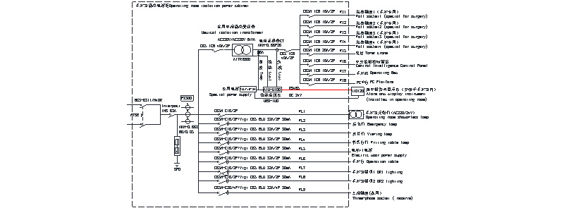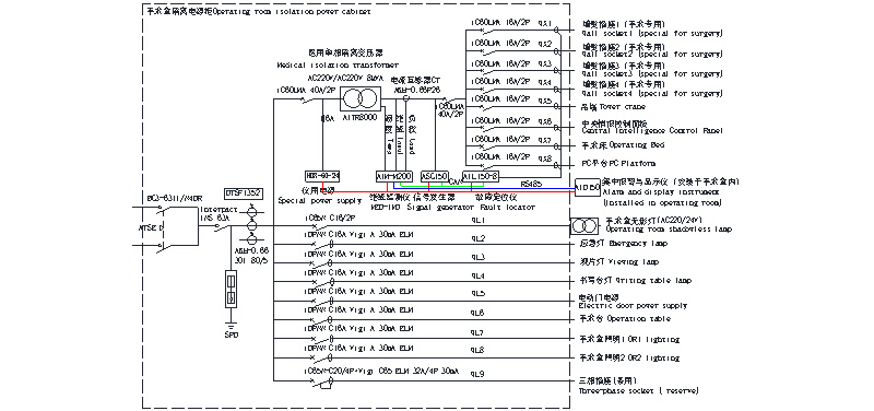 Solutions de distribution pour salle d'opération (schéma du système d'armoire électrique isolée GGF-O8G, par exemple)