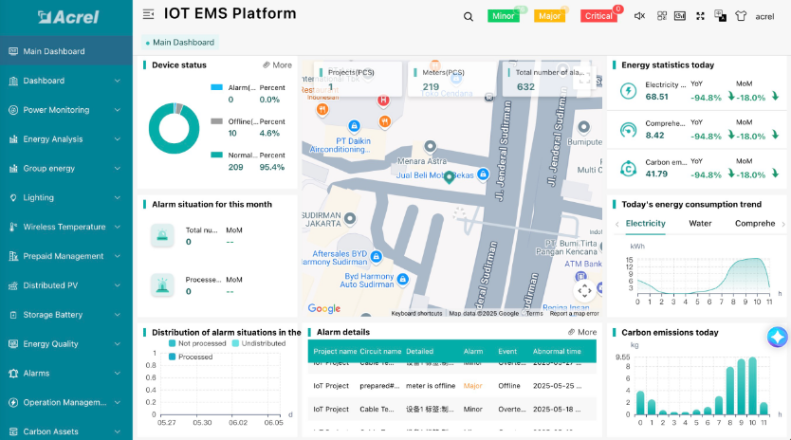 Pour permettre un fonctionnement à distance et une surveillance intelligente, Acrel a déployé une solution intégrée combinant le compteur d'énergie ADW300-4G avec une plate-forme IoT, fournissant un comptage en temps réel, des alertes de panne et un contrôle centralisé. L'investissement total du projet est d'environ 200 000 $ US.